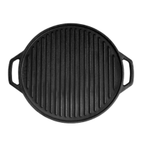 Pre-seasoned 25 cm cast iron skillet with a stylish pink leather handle cover. Great for searing and baking.